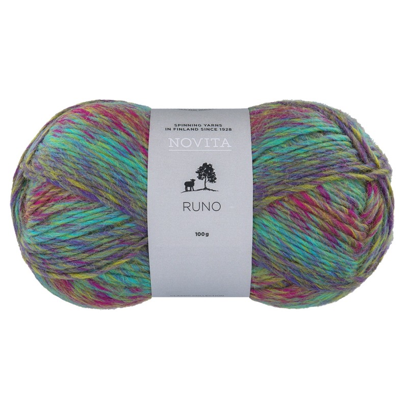 Novita Runo is een ombre garen met een mooi kleurverloop dat zich steeds herhaalt. Tijdens het breien krijg je zo een kleurrijke mix. Het is ook leuk om dit garen te gebruiken voor Scandinavische motieven. Gebruik dan een effen hoofdkleur en de Runo voor het motief. Je kunt de Novita Runo combineren met de garens uit de serie 7 Veljesta, zoals de Nummi, Nature en de 7 Brothers. Je kunt ook je hele project met de Novita Runo maken, dat geeft ook een prachtig resultaat. Of je maakt er een paar heerlijke sokken van.
